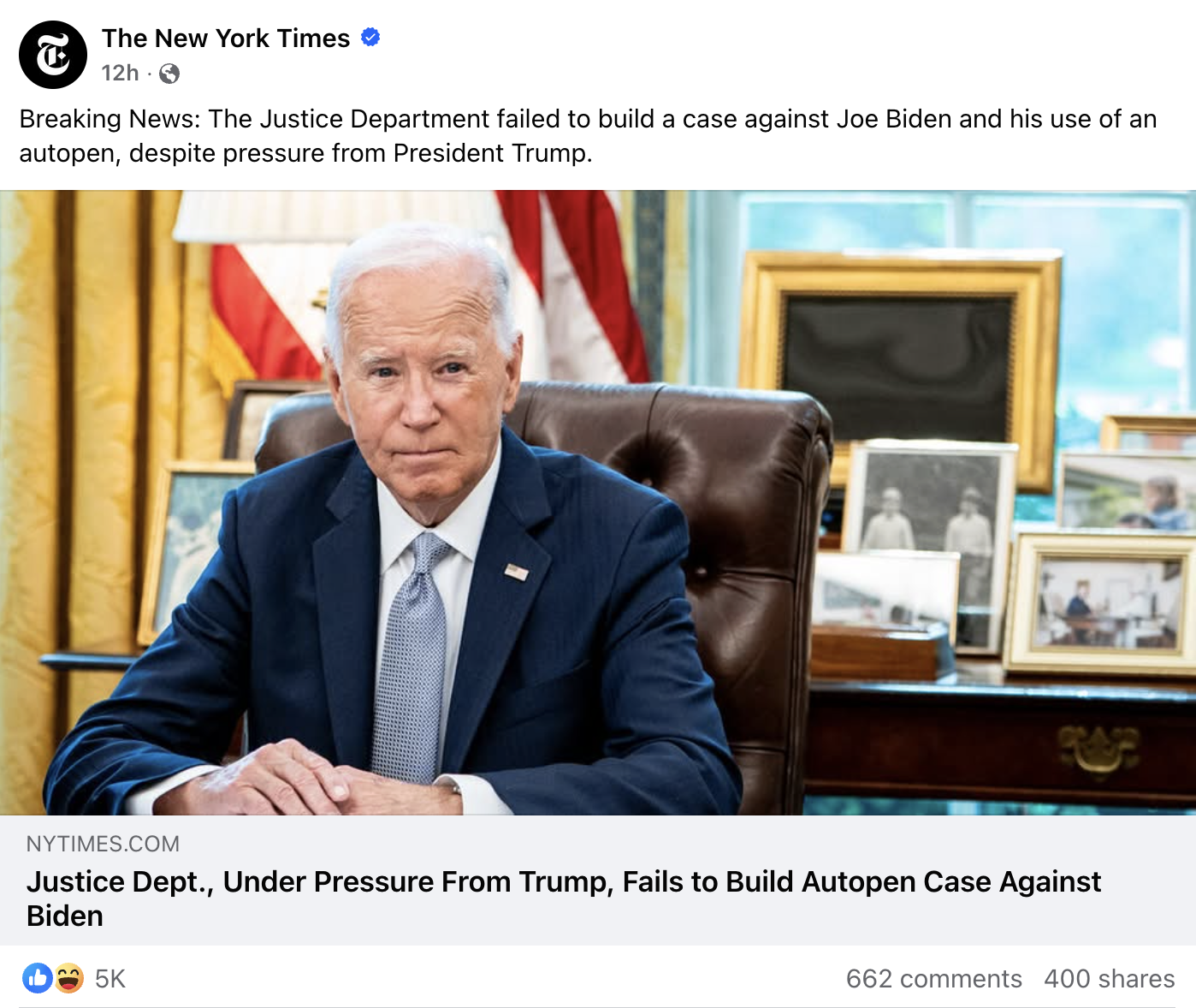 >Prosecutors in the U.S. attorney’s office in Washington were unable to build a case, underscoring the department’s increasing inability to follow through on the president’s desire to indict his rivals.https://www.nytimes.com/2026/03/04/us/politics/trump-biden-autopen.html?smid=fb-nytimes&smtyp=curTrump's second term has been one humiliation ritual after another