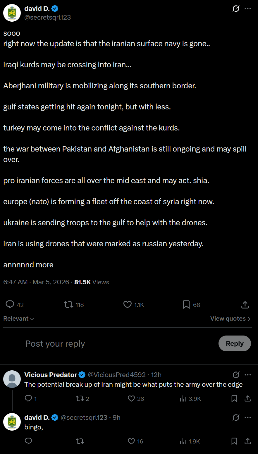 >>529951850Even the azeri dog said he isn't going to start operations against Iran, even the kuwaits that are completely slave cattle for the Us aren't joining the war, and supposedly, one of them shot down 3 mutt fighters.