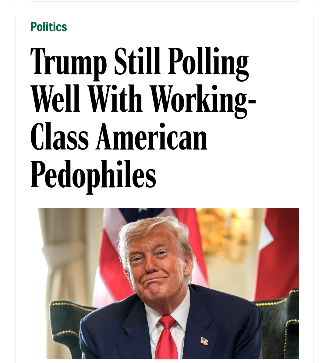 >>529954593Propaganda is so paper thin that it will probably work pretty well on magaslaves. Everyone knows MAGA is in shambles. Virtually every major thing Trump has done has been unpopular with the majority of Americans. ICE killing people, unaffordability and unemployment shooting up, running on a peace platform then starting wars, etc. They are scrambling to rig the situation now that we've all seen mulitple midterm seats in deeply red states flip blue in pretty huge upsets. The Republican party is just deeply unpopular with the majority of Americans and rightfully so