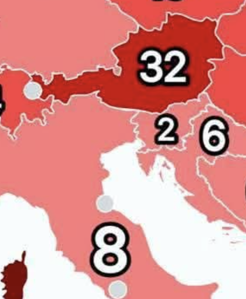 The Habsburg empire included much of the land around current Austria for the longest time - there's no way of drawing historical border lines to make these numbers work.