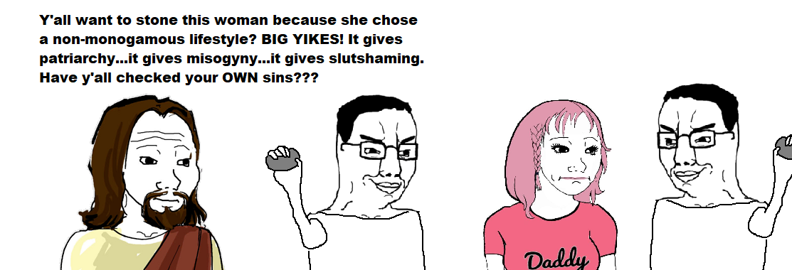 >>529961083>Christianity is a cuck religion.>"Let he who is without sin cast the first stone">Gives Catholics exclusively the ability to cleanse sinWhat did He mean by this?