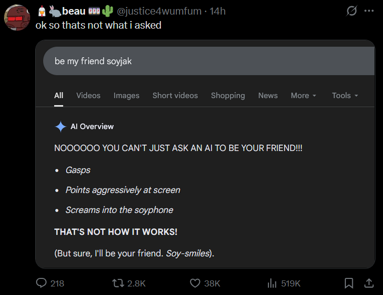 >>529970146I think I'm done. No more interaction. They're not even trying.