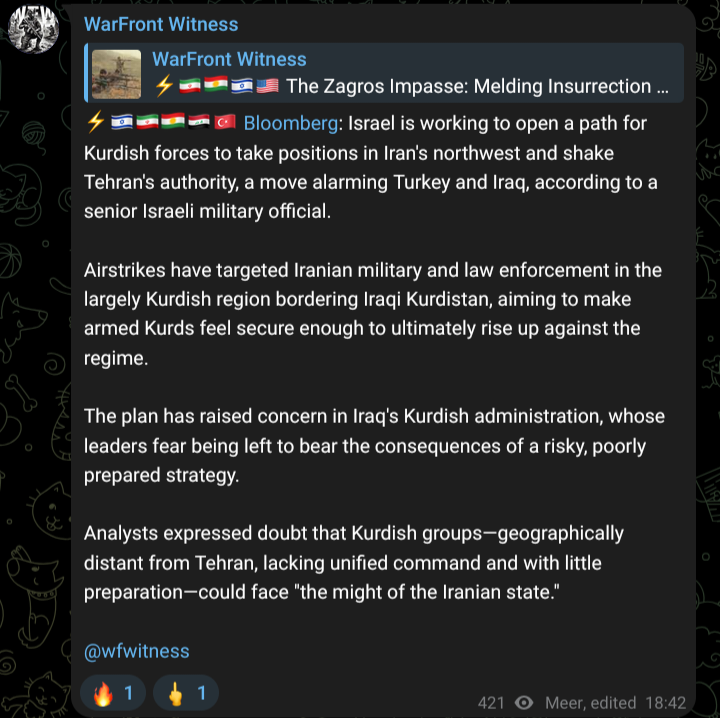 >: Israel is working to open a path for Kurdish forces to take positions in Iran's northwest and shake Tehran's authority, a move alarming Turkey and Iraq, according to a senior Israeli military official. https://www.bloomberg.com/news/articles/2026-03-05/israel-opens-way-to-bring-kurdish-forces-into-war-against-iran