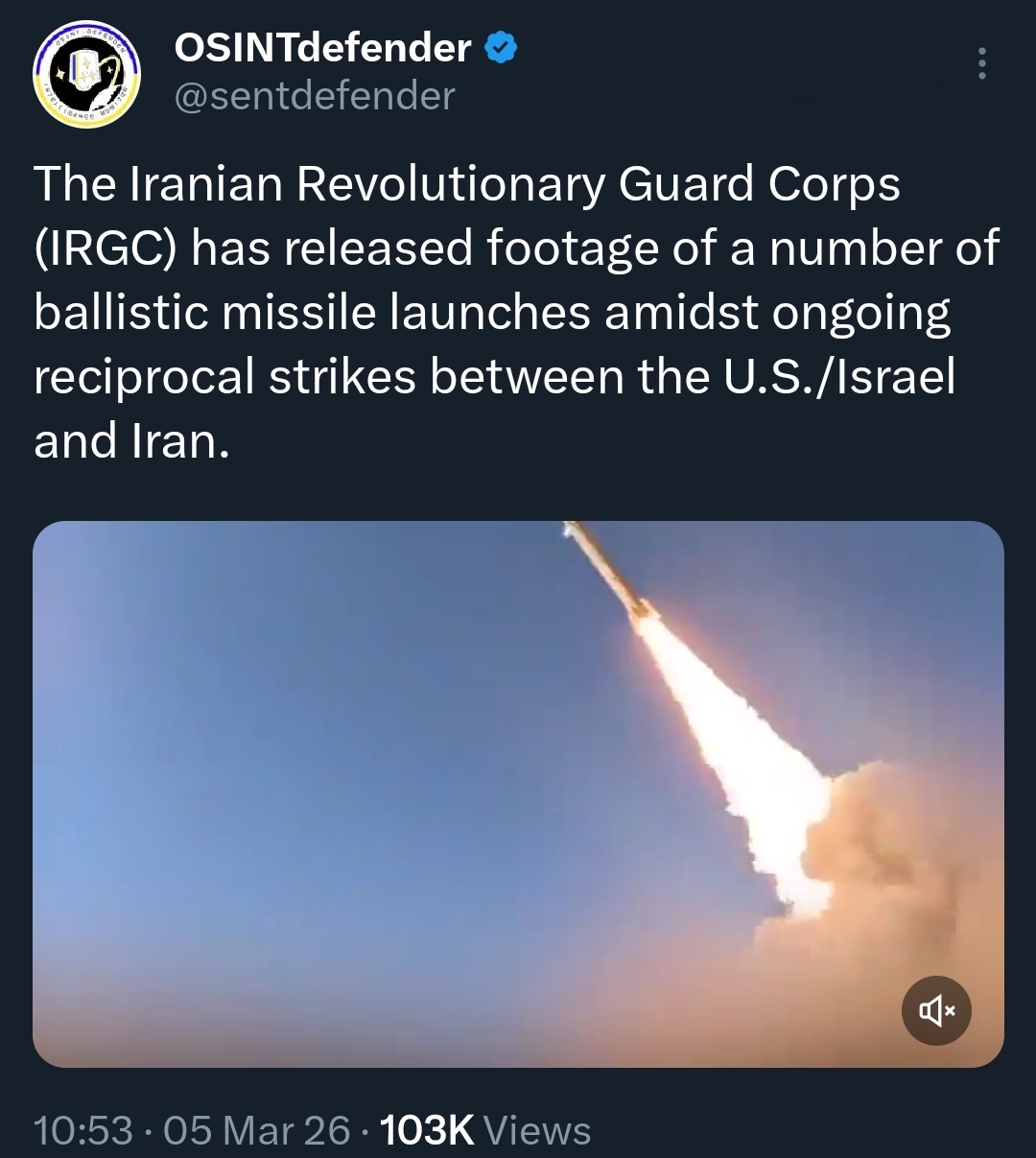 RECAP ▶Week: 1>Kurdish forces in Iraq are preparing to launch a ground military offensive into Iran>20 Iranian warships and a submarine has been sunk in the Gulf of Oman — CENTCOM>Hezbollah joins the war, Israel launches ground invasion of Lebanon and orders evacuation of towns south of the Litani river>Traffic through the Strait of Hormuz is suspended>Iran launches ballistic missiles & drones at: Israel, Saudi Arabia, UAE, Qatar, Kuwait, Bahrain, Oman, Jordan, Iraqi Kurdistan, Cyprus, Turkey and Azerbaijan>Iran's Supreme Leader Ayatollah Ali Khamenei is killed>U.S. & Israel launch a joint regime change operation against Iran, dubbed "Epic Fury"; also targeting Iran-backed militias in Iraq
