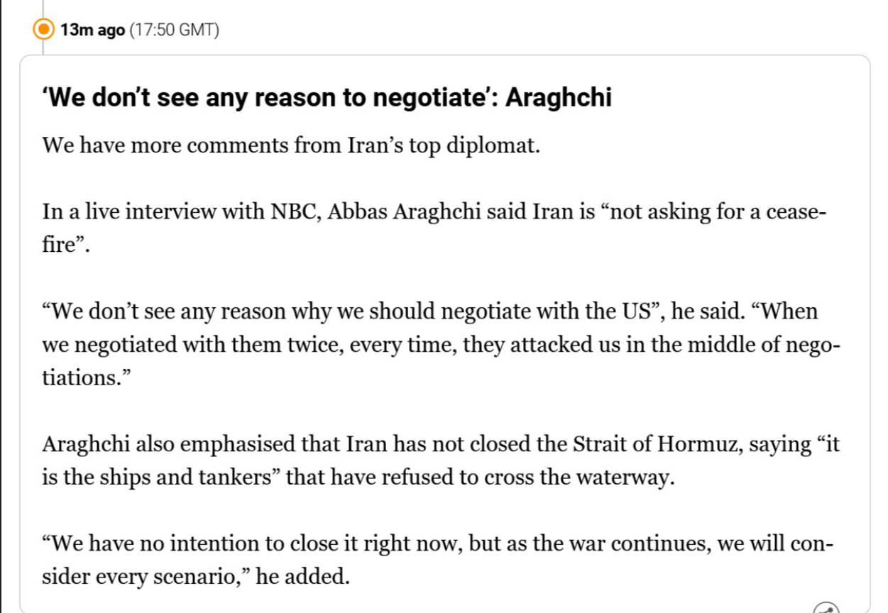 >NBC: Are you afraid of a U.S. invasion in your country?Iran's FM Araghchi: No, we are waiting for them.>NBC: You are waiting for the U.S. military to invade, the ground troops?Araghchi: Yes. That would be a big disaster for them.Told you retards. Iran is doing everything possible to have the US stuck in an eternal quagmire