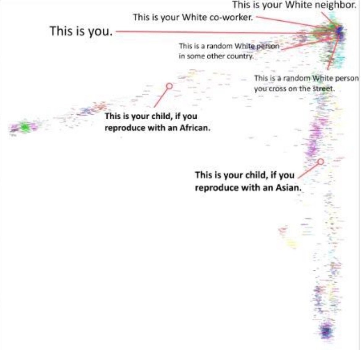 >>529980096>meaninglessit means white people existif you classify white people as people whose ancestors are from europe, and if all peoples with ancestors from europe share genetics that are much closer to genetics from other parts of the world. they all look related and they are. thats europeans, white people, they exist.and yes all asians look asian, they also look different from each other. a japanese and a chinese look more similar than a japanese and a nigerian. they have closer genetics, and it shows. they're all from the same part of the world.asians exist, africans exist, caucasians exist. thats it, im just saying they EXIST and you are so delusional you have to deny that basic observable reality because of political reasons. you are literally insane.