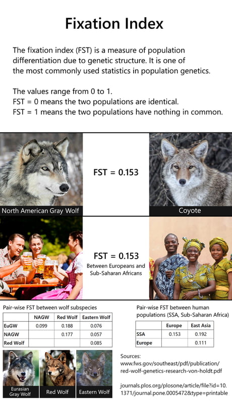>>529983055>Well that's not what federal law says.The law doesn't say anything about genetics because animal subspecies are not decided genetically.Try again. >They utilize the species fixation index as evidence in court.You mean the index that is not measure genetically? That one?>>529983083>the difference between an english and a nigerian is a wider difference both in obvious appearance and genetics than the difference between an english and a french.Based on what? Genetically you can't prove anything. Culturally England and French are more hostile. Politically the two are LITERALLY less unified nowadays.