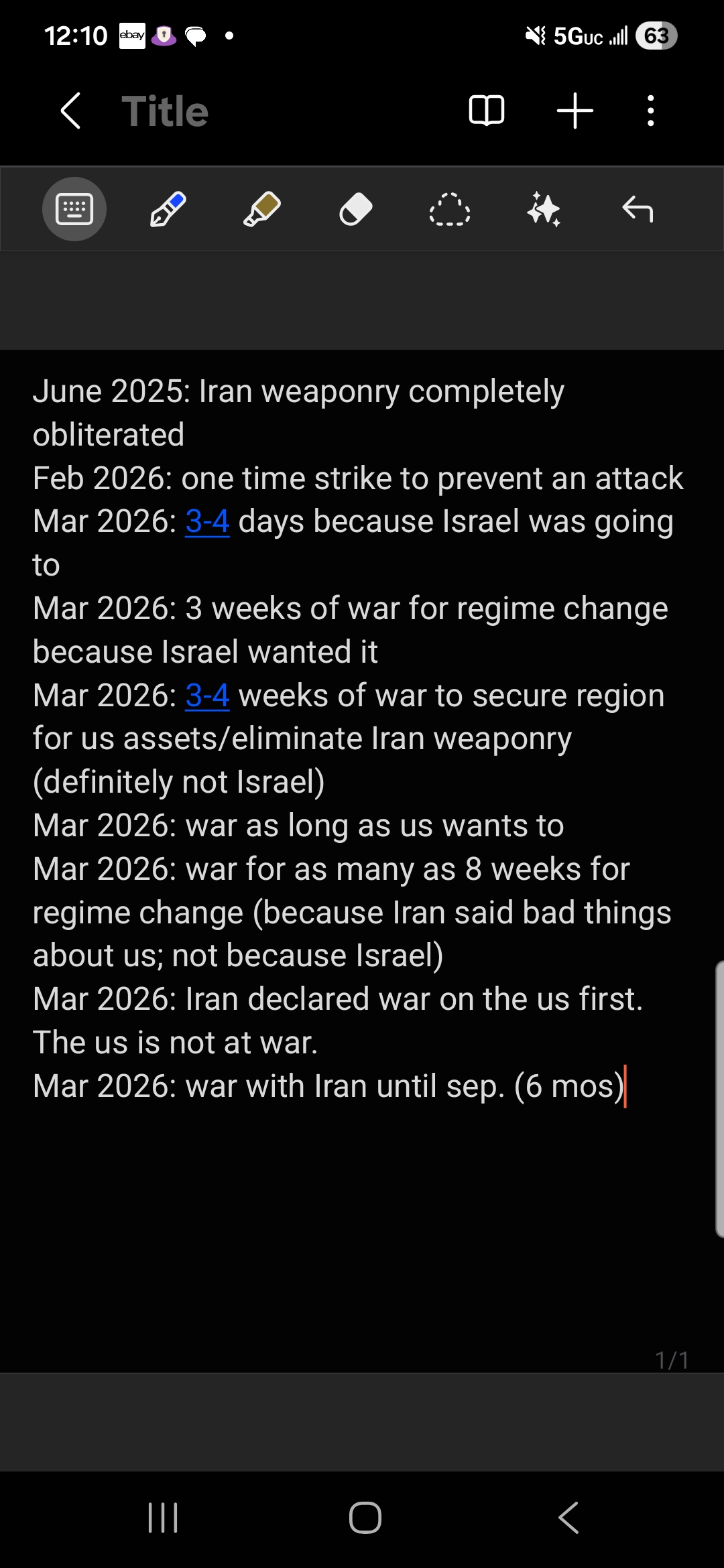 As I expected this will go exactly like the Ukraine war. You get a few days of very high intensity action. Munitions are quickly depleted. Machines need servicing. Takes months to replenish. Regime change didn't happen, so this is now going to become a forever war. Given the enormous size of Iran, the endless amounts of hidden bases and fortifications, and the huge population, it would be the biggest forever war so far. It will never yield any results, especially not before the midterms. Trump has officially dug his own grave because he's a retard. In the meantime there is no solution to reopening the straights, Iran will continue to lob missiles and drones at ships and oil refineries resulting in disproportionate economic damages to US allies in the region.The stage is now perfectly set for Trump to get utterly obliterated in the midterms, which will severely handicap the remaining 3 years of his presidency since the Democrats will be able to block everything he tries to do.