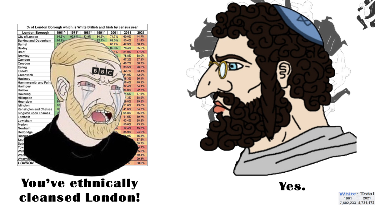 >>529984604>english is no longer an ethnicity if the english are surrounded by foreigners>female is no longer a sex if women are surrounded by mensame fucking logicyou can't change an immutable identity by putting wogs in luton