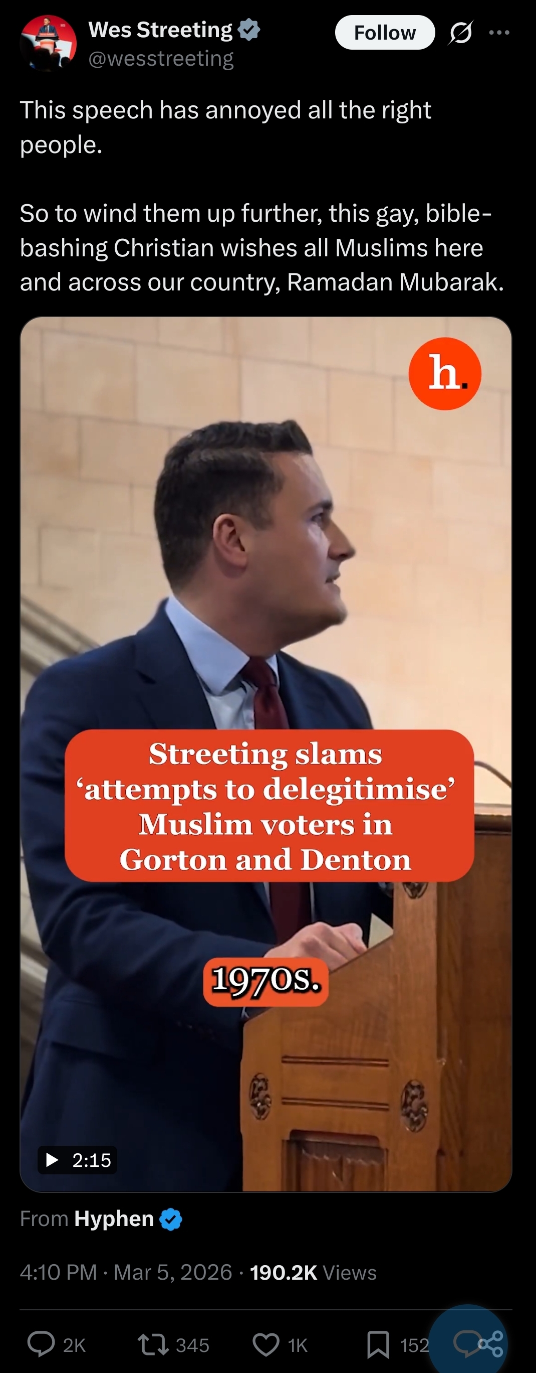 >'They will get me killed': Green deputy leader slams Starmer and Tory MP over smears in parliament>Footage emerged on Saturday of Ali at an anti-war demonstration protesting against the US-Israeli strikes on Iran>The deputy leader of the Green Party has criticised Sir Keir Starmer and Conservative MP Alec Shelbrooke after falsely claiming in Parliament that he had been “protesting in support of the ayatollah”.lol