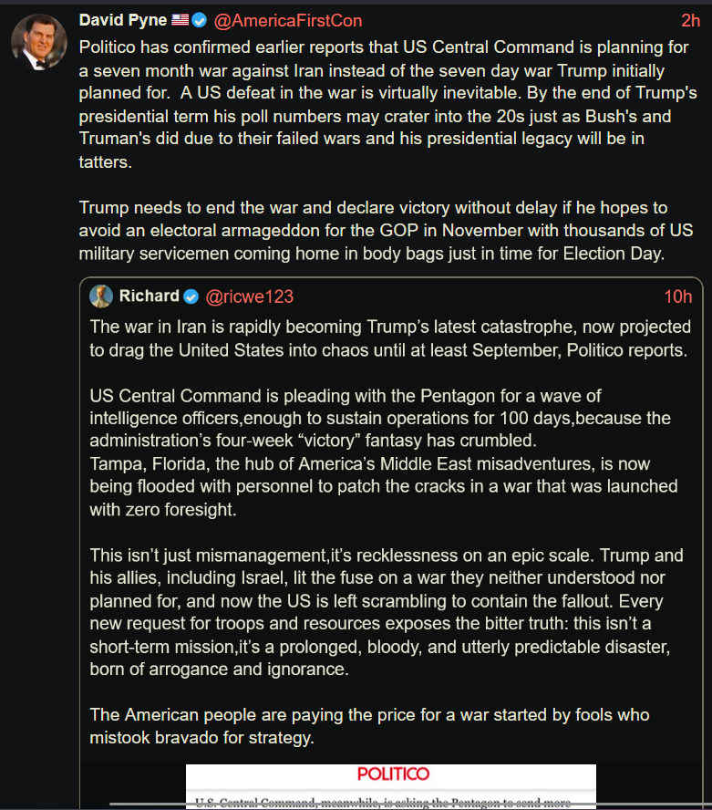 >>529982800Even if that'd be true, aluminum, sugar and fertilizer still could be taken hostage. Lifting the blockade kills major US incentive to end the war fast.At this point, Iran has no strong card left to play and Trump can declare Rubio Iranian shah.