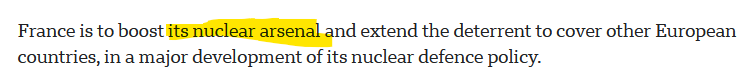 >>529980302You are the dumbest nigger I've ever met. >France is to boost its nuclear arsenal and extend the deterrent to cover other European countries, in a major development of its nuclear defence policy.>In a speech in Brittany, President Emmanuel Macron explained the changes as the response to an increasingly unstable strategic environment.>"The next 50 years will be an era of nuclear weapons," he said.>Speaking to naval officers in front of a nuclear submarine at the Ile Longue base near the port of Brest, he said the number of French nuclear warheads would be increased from their current level of around 300.