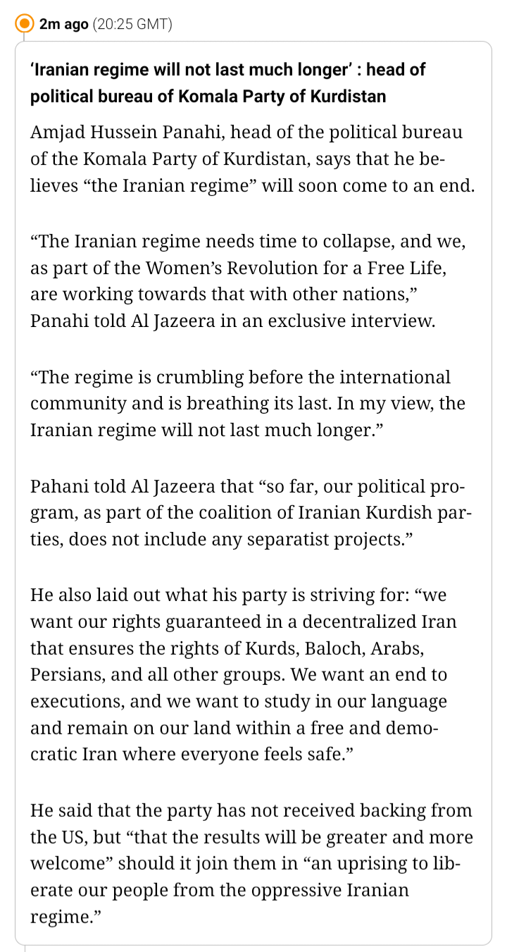Attempts to slide threadMajor evening happenings>Missing US airmen>US bases on fire in Kuwait>Oil Refinery on fire Bahrain>More strikes inboundStay tuned