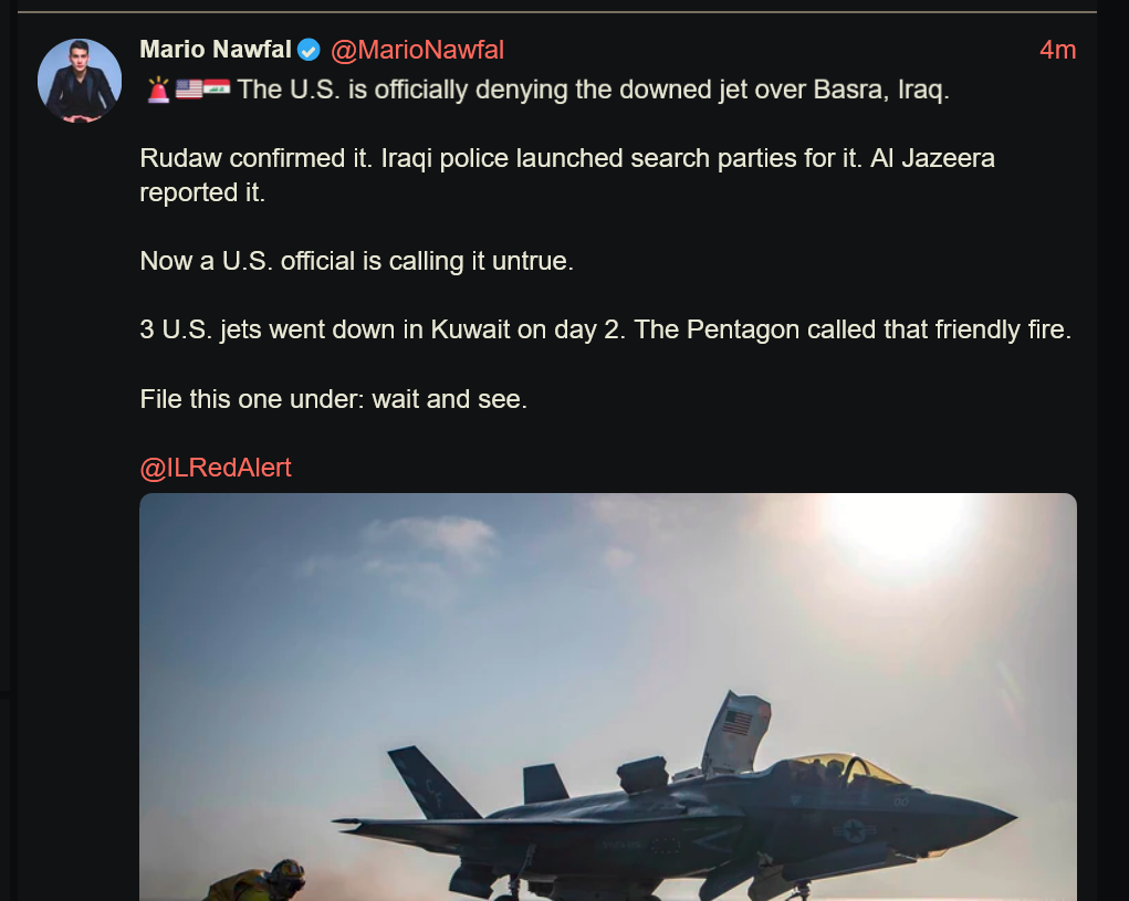 Centcom Chuck 8 hours ago> The Iranian regime's ability to impact U.S. forces and regional partners is rapidly declining, while American combat power continues to build.https://xcancel.com/CENTCOM/status/2029543711407837528#mIrans hits today- azeris biggest civilian airport- saudis last and 4th thaad- BAPCO (biggest bahrain refinery, that hit alone dwarfing the 1972 oilshock)- israel tonight just starting