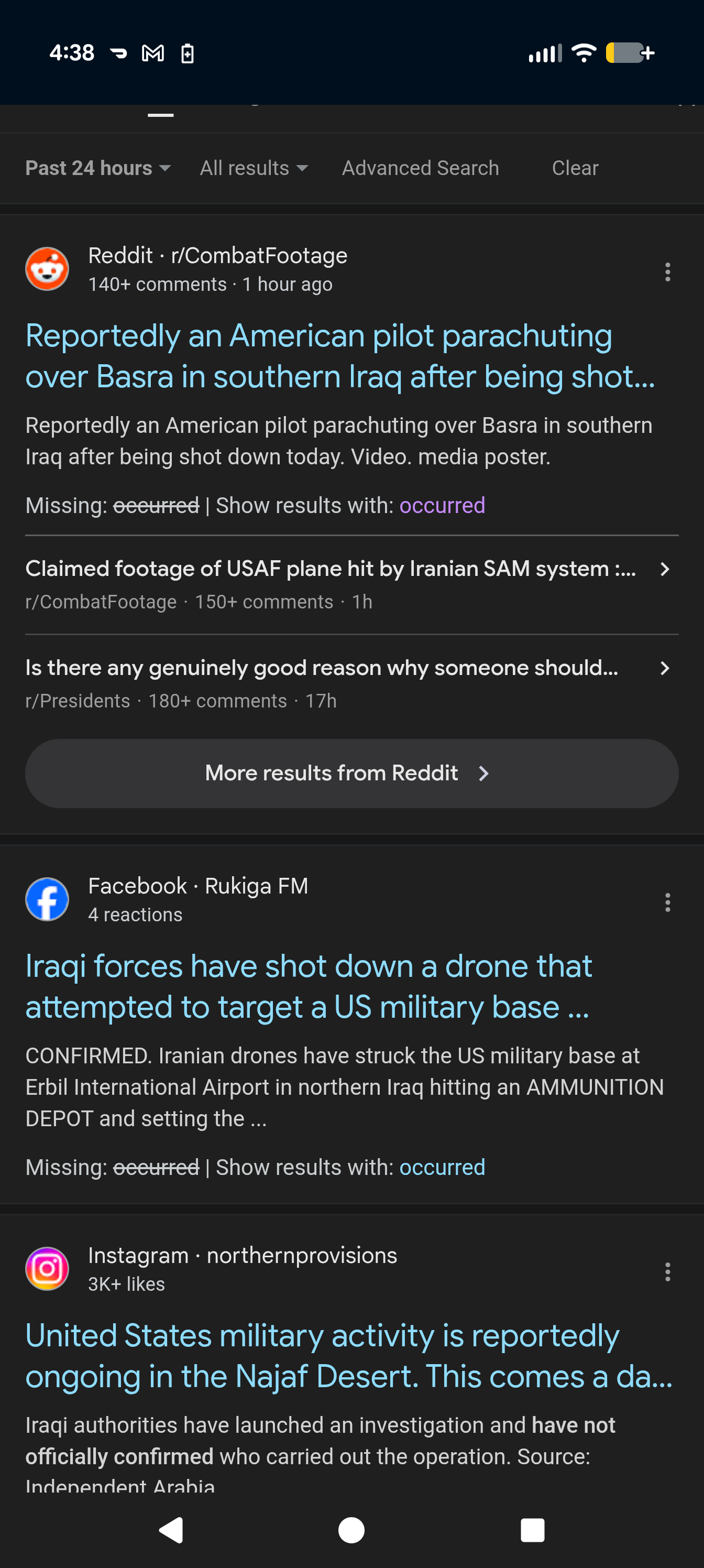 US jet down over Iraq, we got an honest signal that it is real (iraqi police looking for them)
