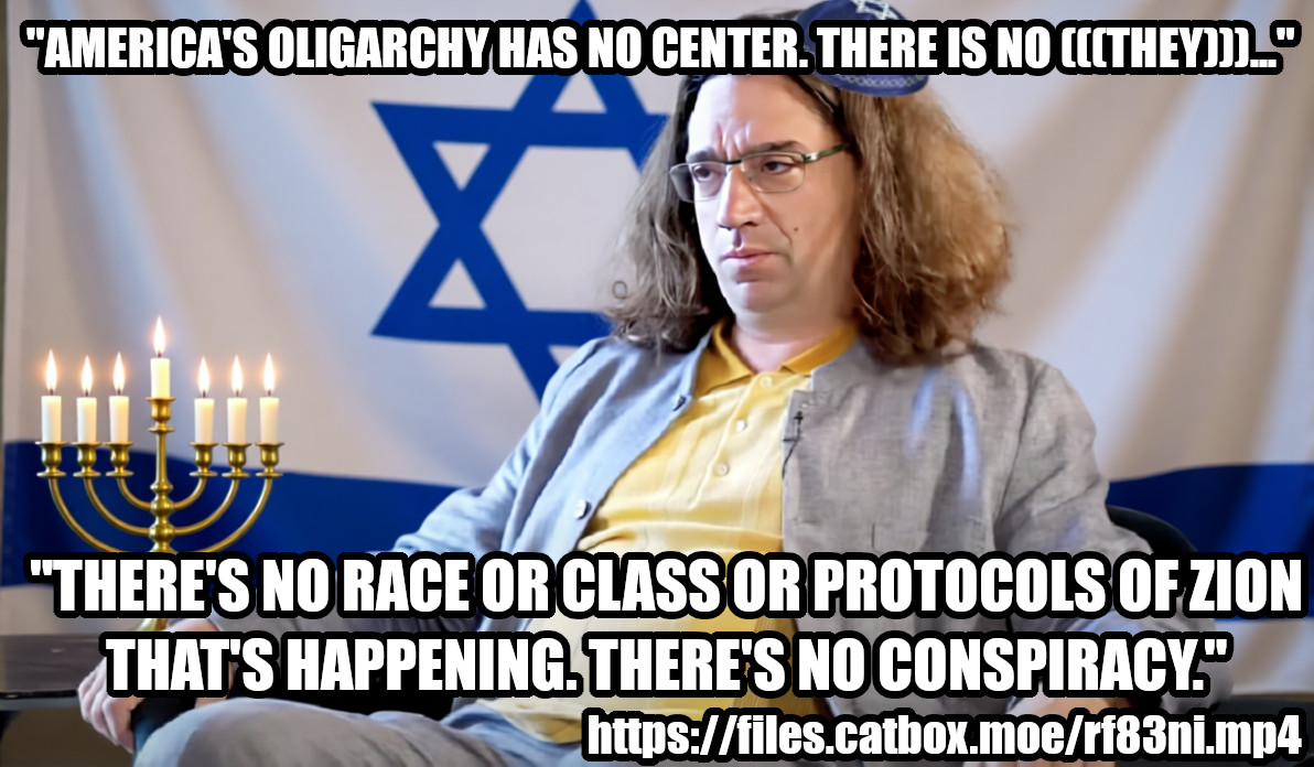 >>529982141>israel israel israelHe is not calling them out by race, nor has he rescinded his vitriolic dismissal of White racial identity. He still lied about not knowing his father was an arch glownigger. He still went to Comet Ping Pong. He was still buddy buddy enough with the Bidens to request and get his kid a letter of recommendation from Hunter.This is all a good start, but if he continues what every controlled opposition is currently doing, calling out Israel, zionism, even chabad and bibi, but NOT the jews or their systems of control, or their centuries of evil, it isn't enough. You can bet that his rhetoric will be running in place