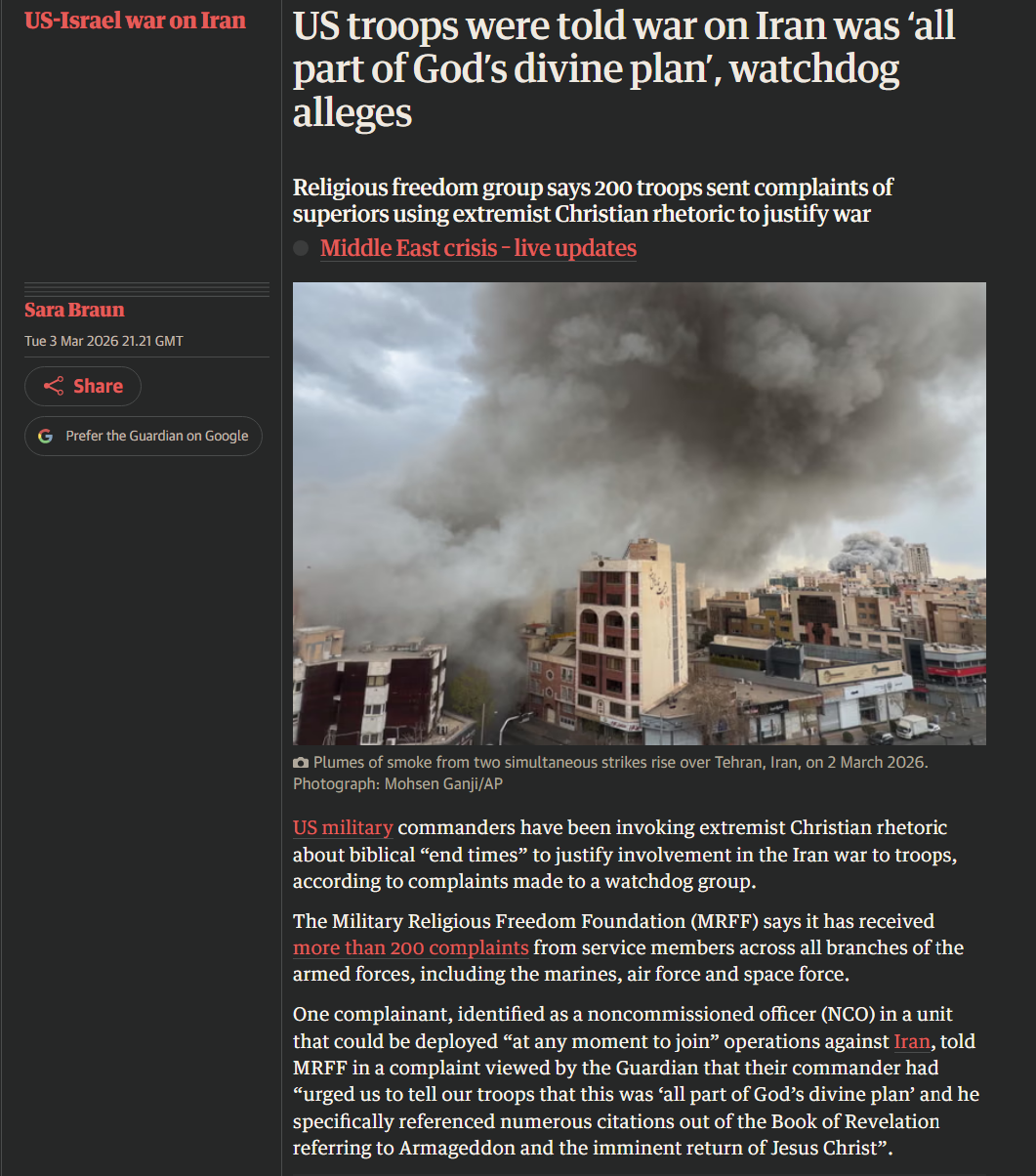 >>529985800>How to defeat an enemy that see war and death as holy?So why does that tattoo-festooned fruitcake Hegseth talk about Biblical end times and Armageddon?I thought the US Constitution was meant to separate from religion and state?