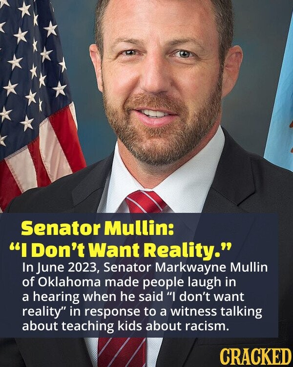 >Senator Markwayne Mullin has never served in the military