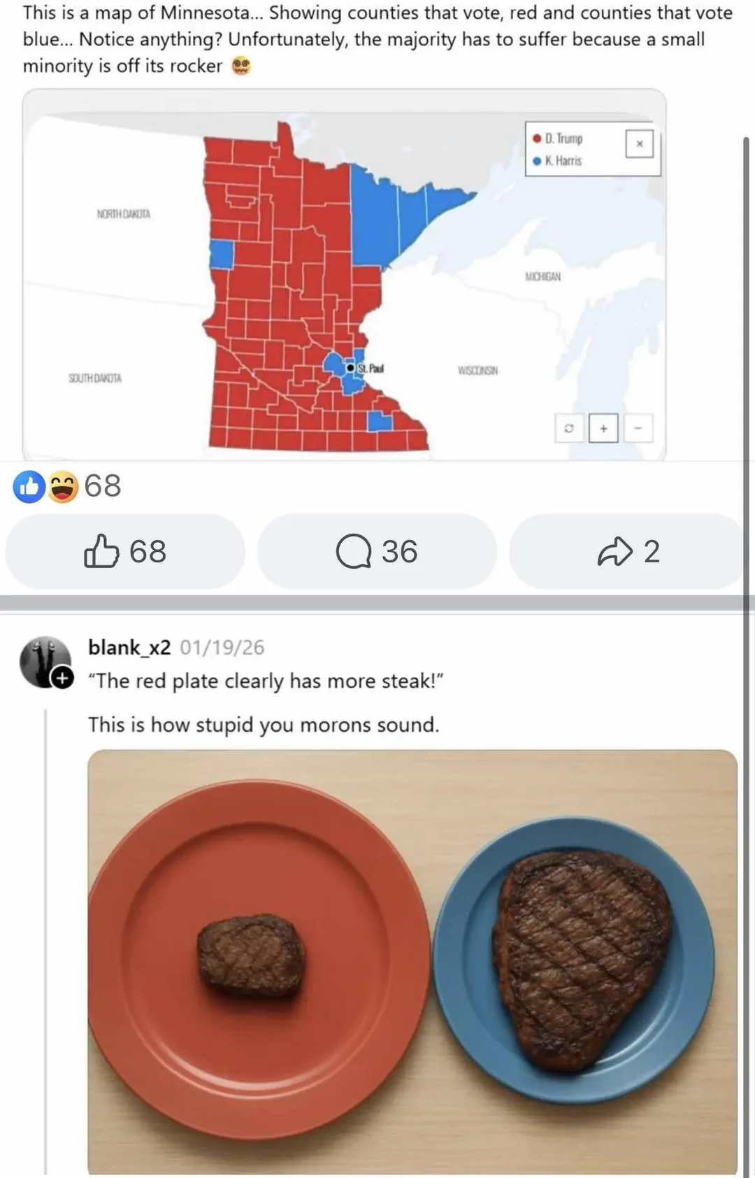 Virginia is the funniest one since outside of a few cities it's almost all red, but it has one of the gayest liberal governments in america right now.