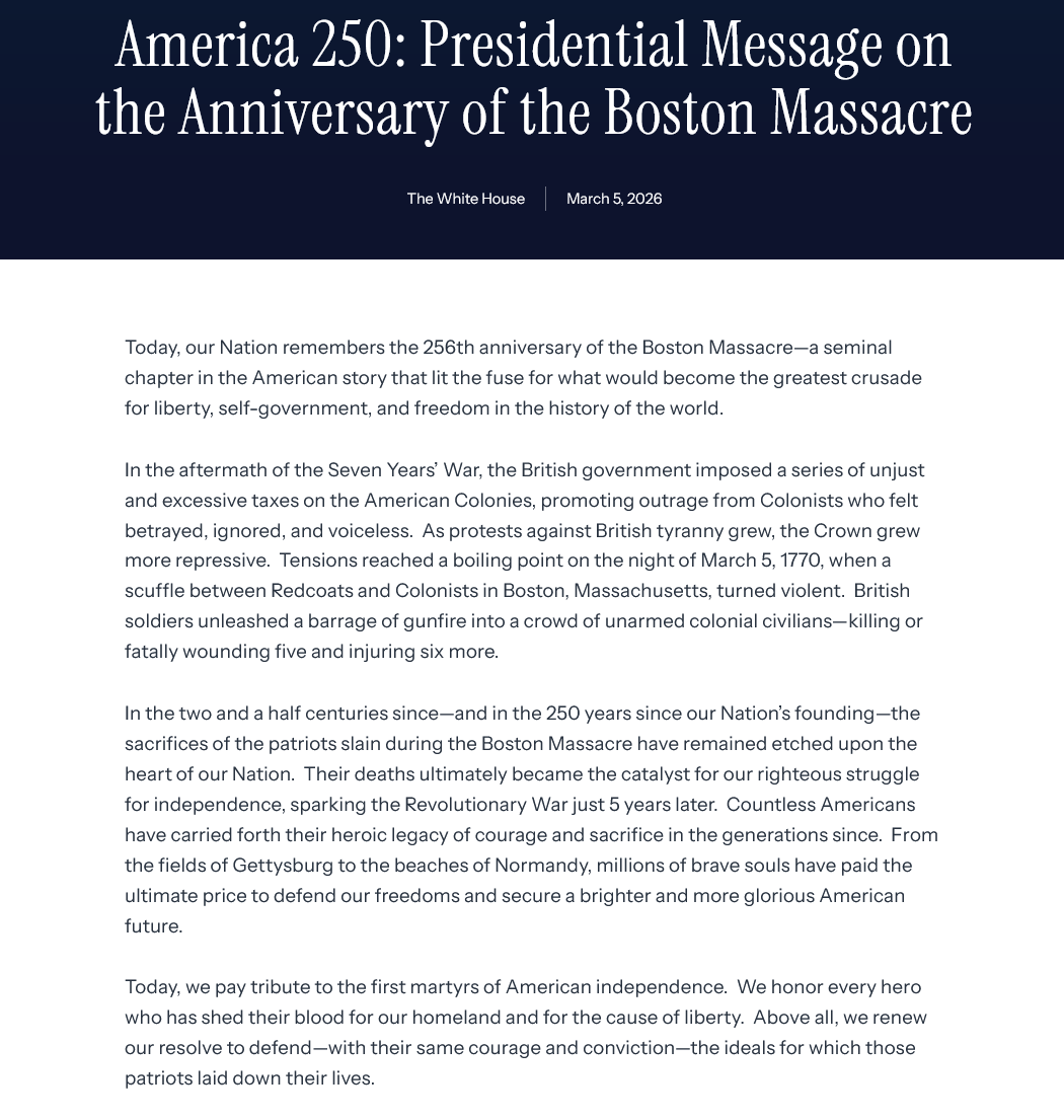 https://www.whitehouse.gov/briefings-statements/2026/03/america-250-presidential-message-on-the-anniversary-of-the-boston-massacre/
