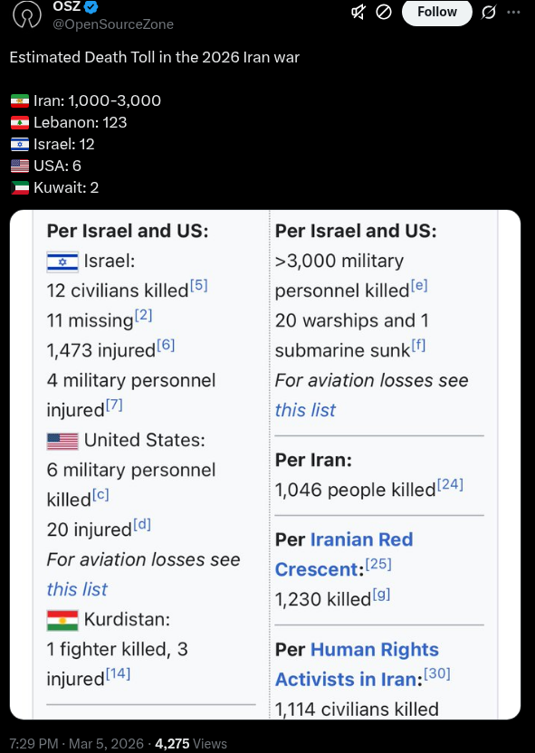 >>530005245I guess they're not including the tens of thousands of Iranian protestors that were killed in the beginning of the year?