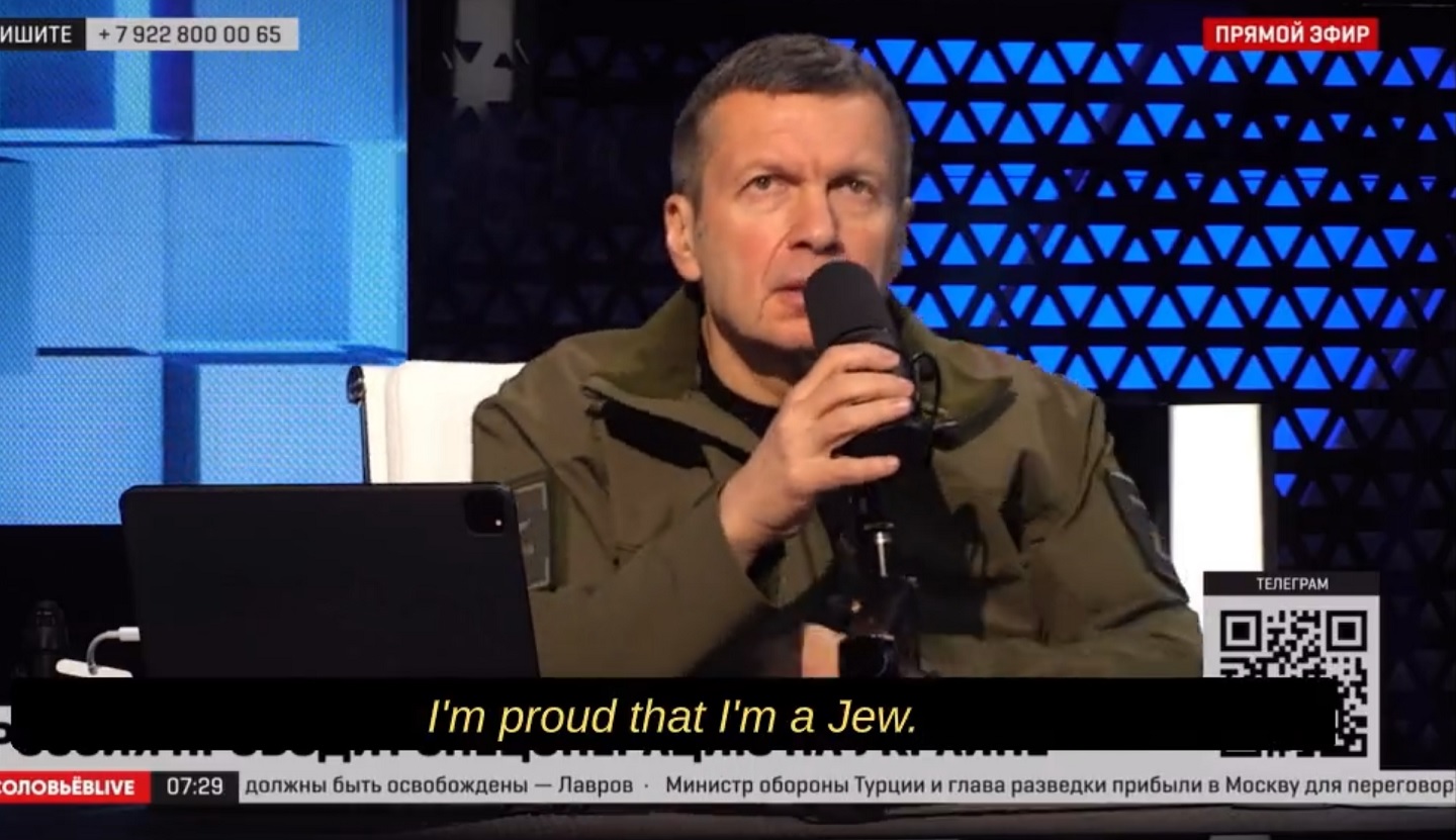 here's king kremlin kike's chief russian tv personality/propagandist saying Zelenskyy isn't a jew