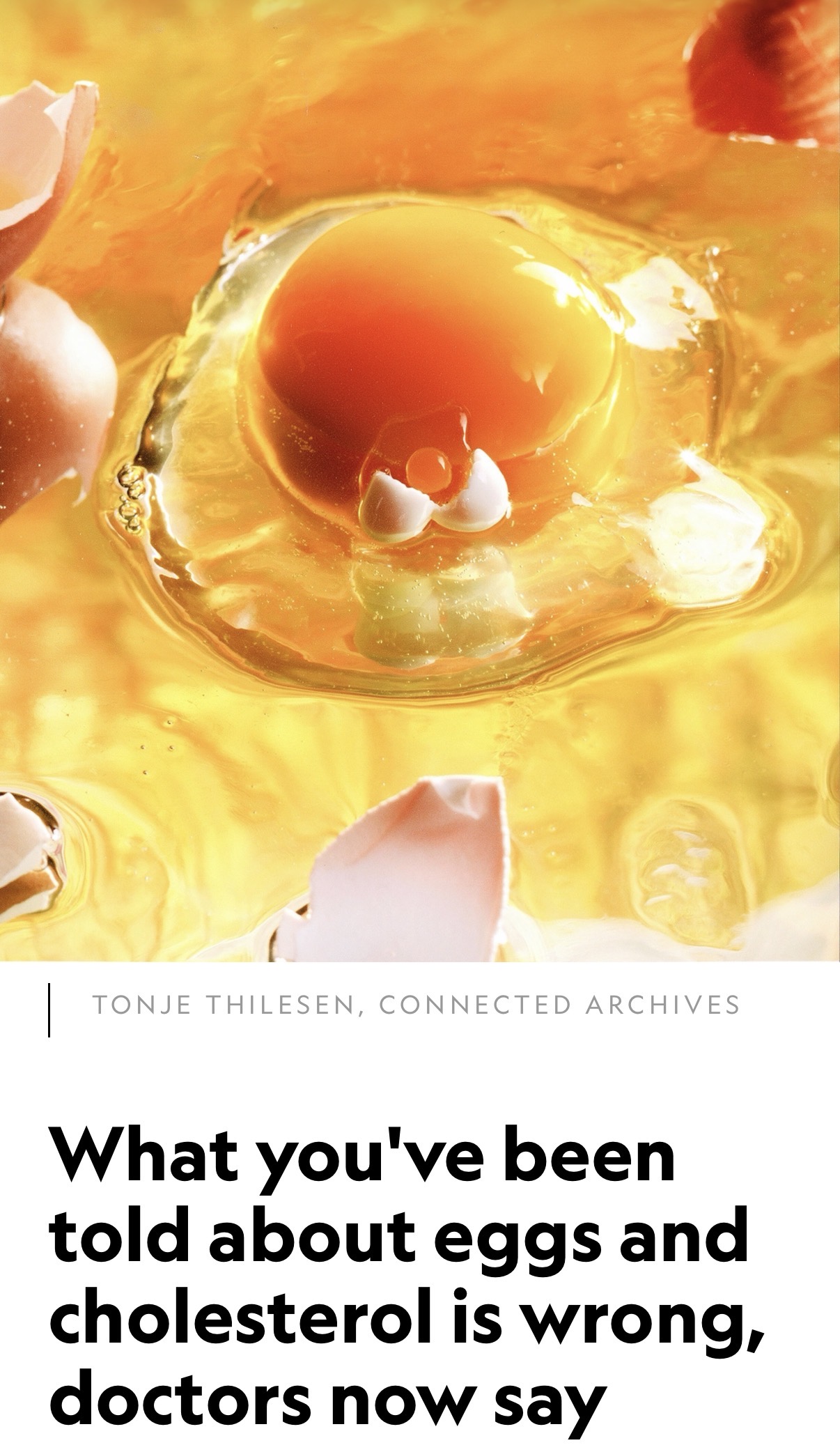 >Skip the bland egg-white omelets: egg yolks are no longer the dietary demons they once were.>Egg yolks have long been blamed for causing high cholesterol. But mounting scientific evidence suggests they were never really the problem.I fucking love science. Always changing! Experts are discovering new breakthroughs every day! Eat yo eggs!