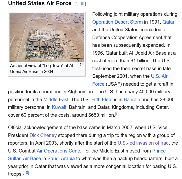 >Drone attack on Al Udeid US base in Qatar