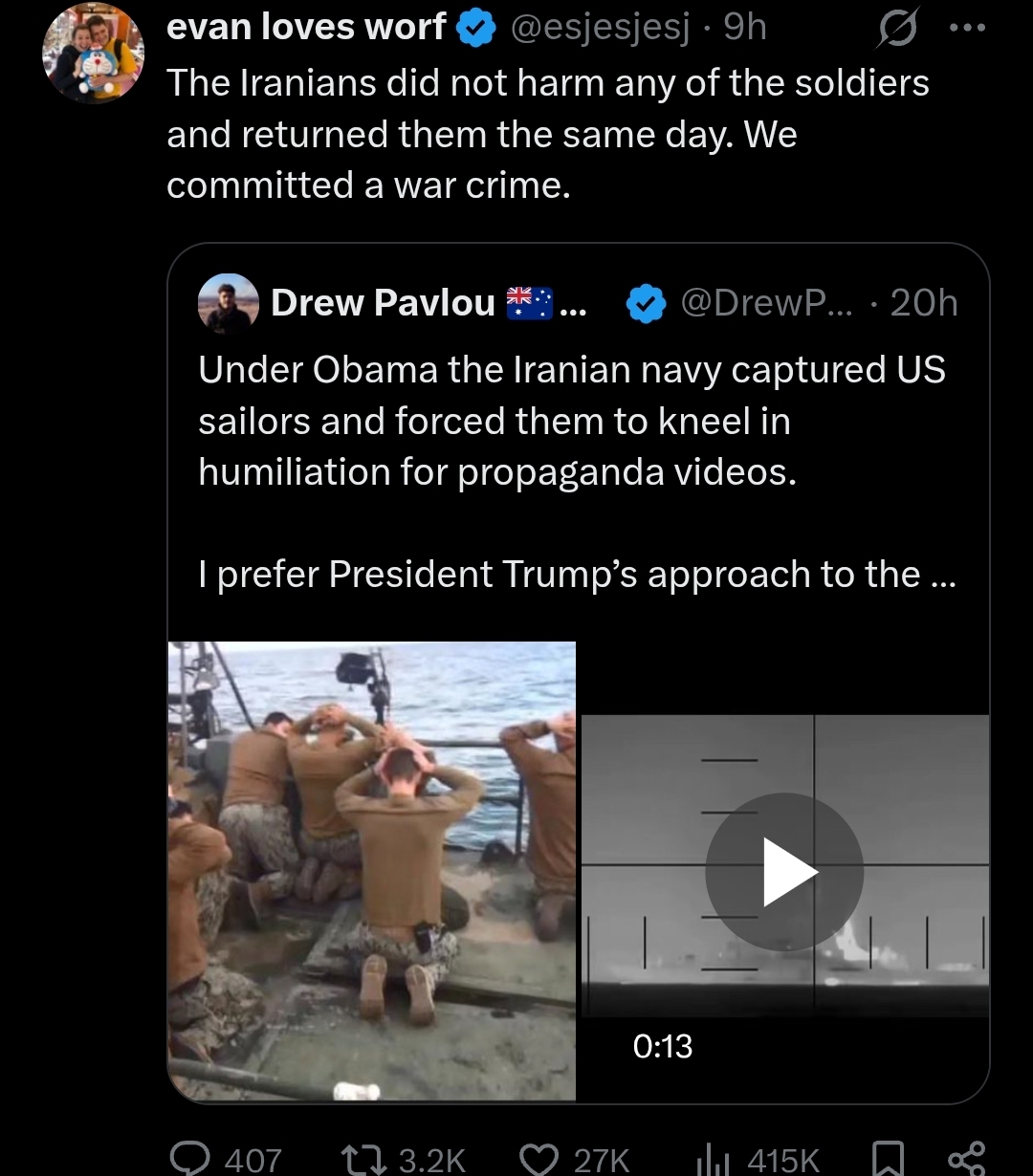 >>530011985You should've seen it earlier. Ya know these retards who swarm in here from discord with their lil narratives? One of them earlier said he wanted troops on the ground in iran just to spite us or something. Then after everyone laughed, he said "n-no I actually don't want that"