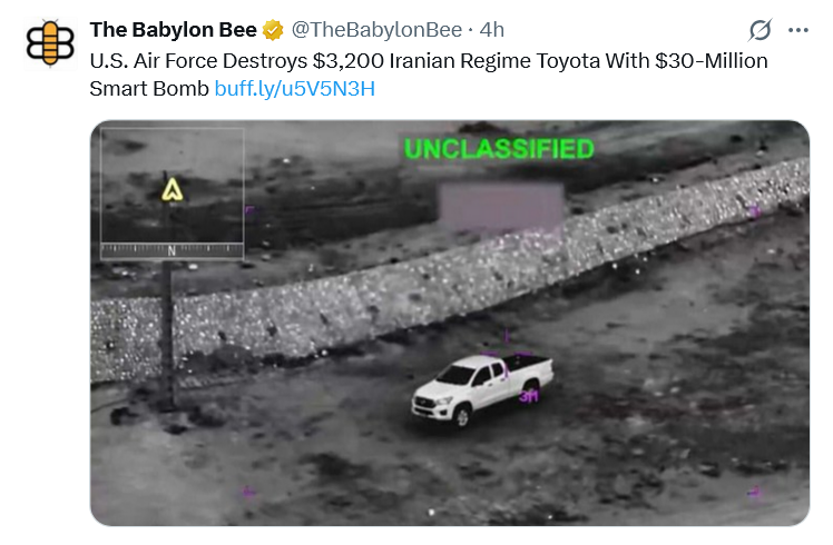 Mossad assets mocking CENTCOM attacks on cheap trucks and decoys that cost americans billions. That's how bad it is