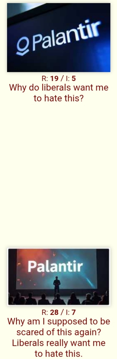 Because this board covertly serves Chinese interests and the US having something like Palantir would be bad for their attempts at subverting US democratic capitalism