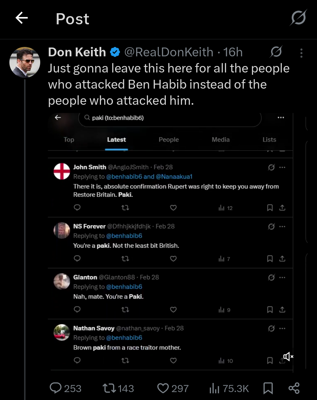 >>530025536When people see a paki they see all the corruption and yes the ottoman sex industry that they themselves have been groomed into thinking of as "grooming gangs".Maybe Ben Habib isn't one of them, But its a stereo type for a reason. People that show pattern recognition are all "muh ebil people"?