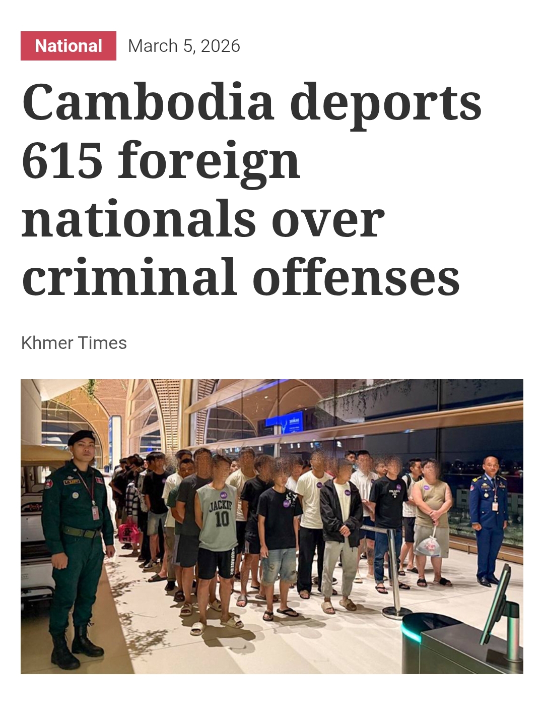 >individuals were expelled for offences such as illegal border crossing, staying in the country without a valid passport, and working illegally in Cambodia.Apparently you don't have to give illegal migrants 40k to leave, you can just put them on a plane.