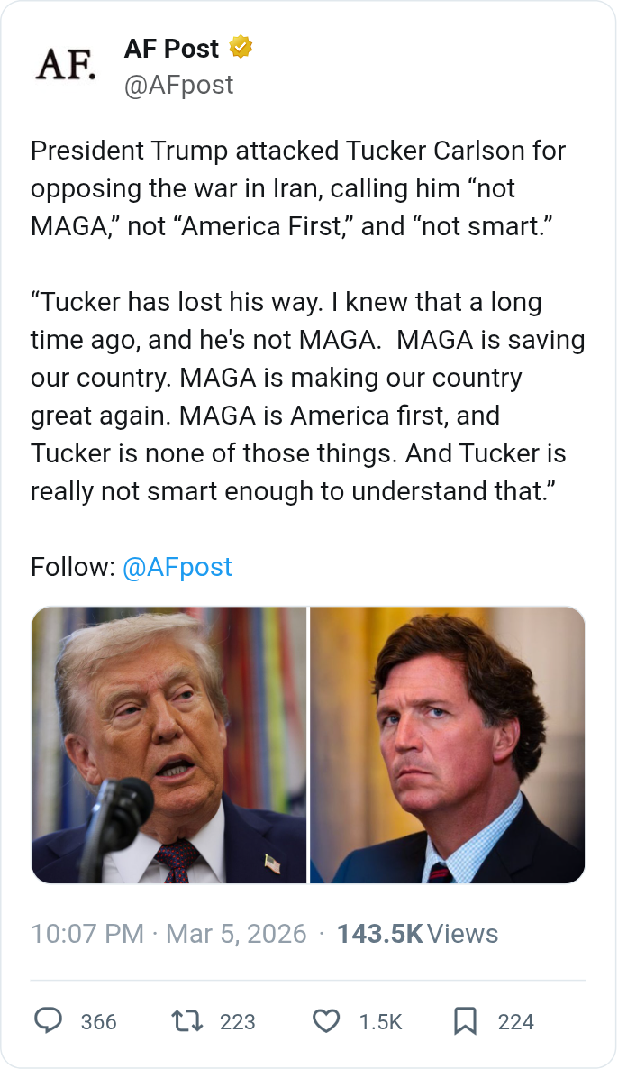 >attacks Tucker Carlson>says he’s cool with kids getting sex changes as long as their parents give a thumbs up>all within a single nightDo you think anyone could have predicted this is what maga would become?