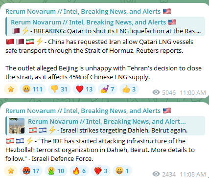 Previous: >>530020200Timeline▶Day: 7>Editor-in-Chief of The War Zone (TWZ) Tyler Rogoway says the U.S. and Israel have not achieved full air supremacy over Iran, despite claims>Major Gulf economies — including Saudi Arabia, the UAE, Qatar, and Kuwait — are reviewing overseas investments as the Iran war strains their finances>UAE is considering freezing billions of dollars in Iranian assets held in the country, and may also seize Iranian ships – WSJ>U.S. strategic bombers arrived in Diego Garcia, massive uptick is bomber sortie rates coming soon▶Livestreamshttps://www.youtube.com/watch?v=4E-iFtUM2kkhttps://www.youtube.com/watch?v=JHwwZRH2wz8▶Telegramhttps://rentry.org/tgnews▶Twitter accounts (using proxy frontend because twitter's UI is trash):https://nitter.net/clashreporthttps://nitter.net/FaytuksNetworkhttps://nitter.net/sentdefender▶Israel Rocket Alertshttps://www.tzevaadom.co.il/en/▶Air Traffichttps://www.flightradar24.com/https://flightaware.com/livehttps://globe.adsbexchange.com▶Maritime Traffichttps://www.marinetraffic.com/https://www.vesselfinder.com/Note: /pig/ is a pro happening thread (both TKD and TMD), this is neither pro-Iran nor pro-Israeli, avoid splitting like autists of /uhg/ & /chug/.