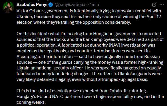 hungary kidnapped multiple Ukranians, stole a bank truck with over 10 million euros of currency for no apparent reason or motive. The whereabouts of the kidnapped Ukranians is still unknown