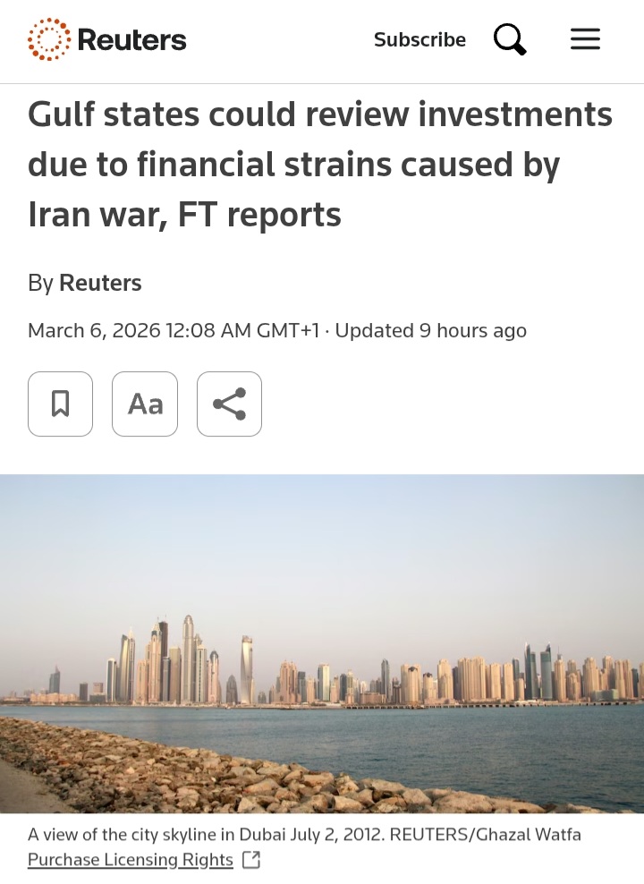 >https://www.reuters.com/world/middle-east/gulf-states-could-review-investments-due-financial-strains-caused-by-iran-war-ft-2026-03-05/
