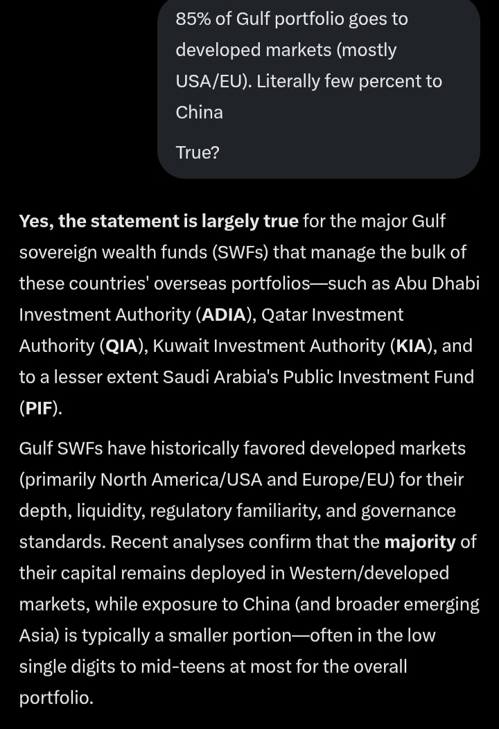 85% of Gulf portfolio goes to developed markets (mostly USA/EU). Literally few percent to China, you fkn retard xD