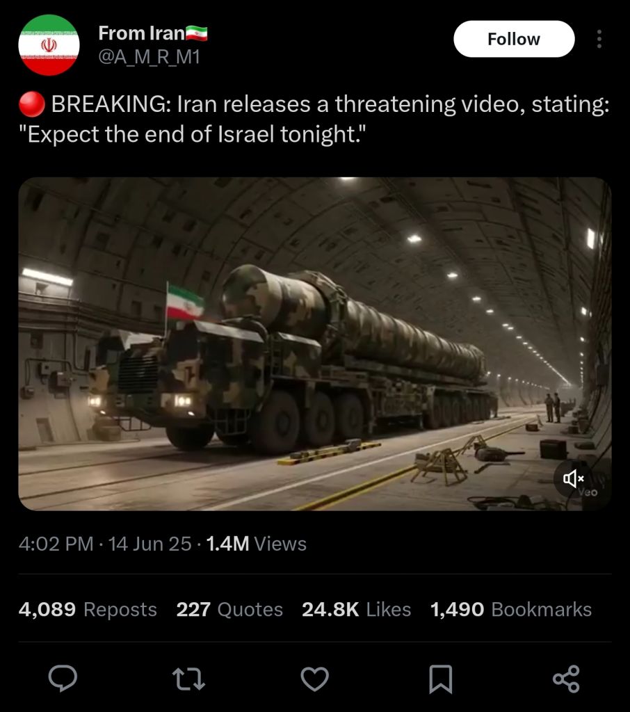 Iran has not even begun to kill Israelis. Every Israeli dead at this point has merely been a prelude.All their early warning radars are gone. Israeli accounts on Twitter are mentioning that they only get a 2 minutes warning now before a missile strike as opposed to 15 minutes they had before.Tel Aviv is almost reduced to rubble and Iran hasn't even used its most advanced tech yet. Haifa has only just started to be hit.Iran has also kept in reserve hitting Israel's desalination plants. It is just now hitting the pipeline from Azerbaijan that supplies 30% of Israel's oil. Major swaths of Israel's civilizational infrastructure have yet to be hit.And most importantly of all: Iran has said that if Israel or the US nukes them, they will bomb Israel's Dimona nuclear facility. if Iran is nuked they will bomb the nuclear facility and make it go Chernobyl, right in the middle of the country. At least half of Israel's territory would probably be rendered uninhabitable.Iran is going to destroy Israel, one way or another. They're not fucking around here.