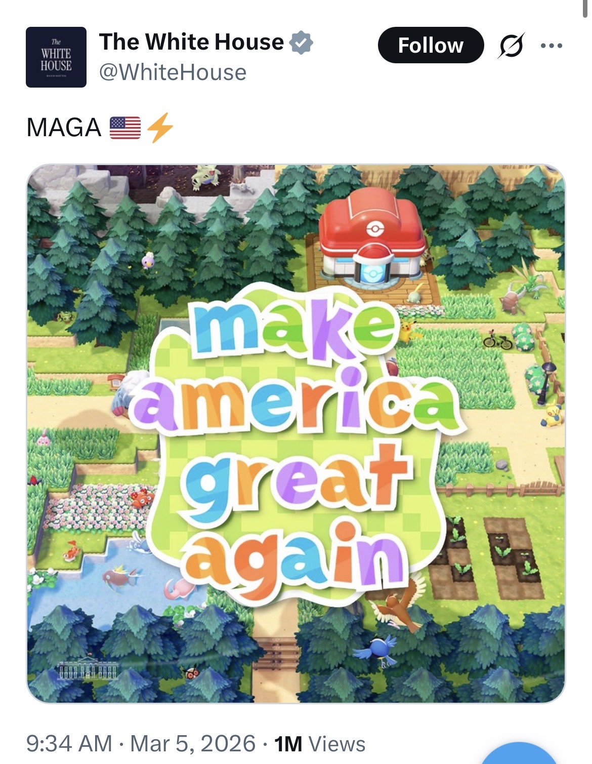 why is the administration so cringe, this is the actual white house twitter and they are posting marvel slop, do they a 15year old intern making this?