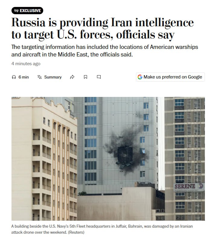 >>530036970Supposedly, according to the CIA’s official unofficial newspaper the Washington Post, Russia and China are supply Iran with intelligence on American forces in the region.