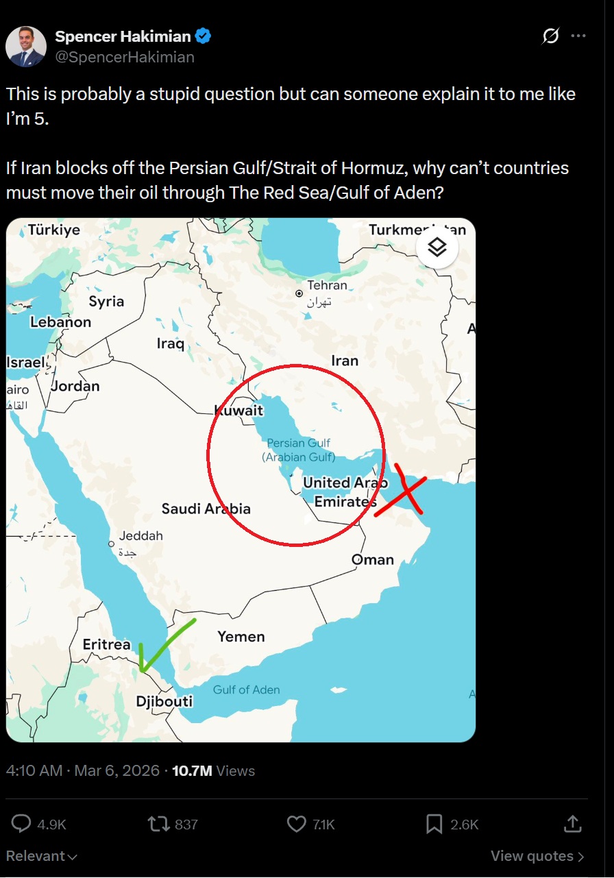Hurry up and do 10 years of new infrastructure in 1 year for $1 trillion, and as soon as it's open for business, the Strait of Hormuz opens back up, and all that investment goes in the trash.