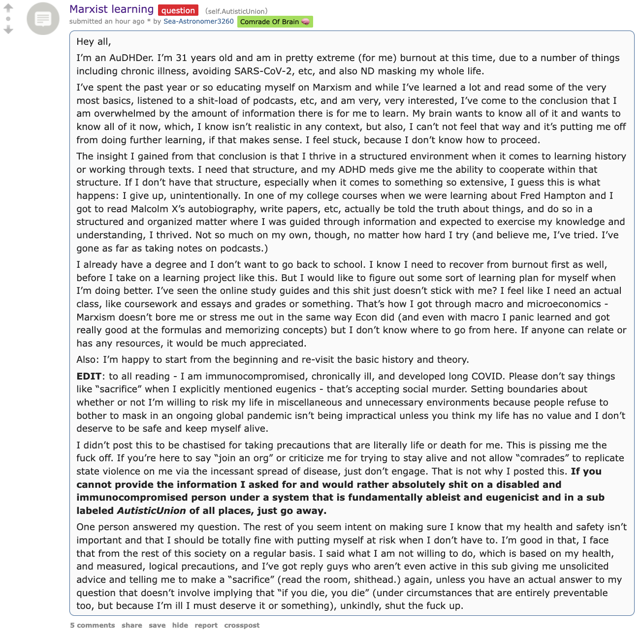 Also, obligatory ">redditspacing"