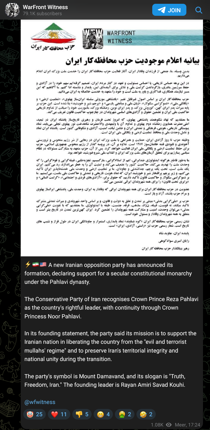 New Iranian opposition party established.