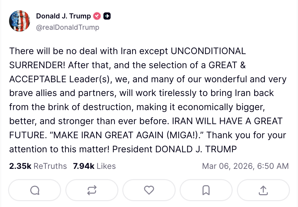 >>530055778why do you want bad things to happen so much?>>530056056>how does america expect to use carriers when iran has hypersonic missiles?>omg doesnt america know about the drone swarns!>the moment they attack sleeper cells will wake up and nuke US cities!It turns out if you just start doing things in reality, they work! ImagineThe internet was a psyop now we have iranians posting AI cope getting brainrotted leftists to freak out so they think its effective at doing something while back in reality they are losing 1 ayatollah and 5 missile launchers per minute.