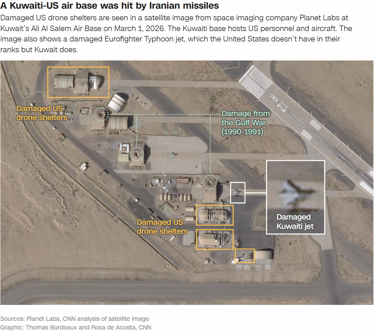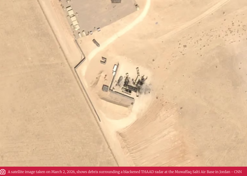 Satellite imagery indicates that Iran targeted U.S.-made AN/TPY-2 radars supporting Terminal High Altitude Area Defense (THAAD) systems in Jordan and the UAE during the first days of the U.S.-Israeli strikes on Iran. The radar at Muwaffaq Salti Air Base in Jordan, over 500 miles from Iran, appears destroyed with 13-foot craters near the system. The THAAD battery comprises five 40-foot trailers and had been operational at the base since mid-February.In the UAE, three buildings at Ruwais and four at Sader were struck between February 28 and March 1, including vehicle sheds that house THAAD radar components.https://clashreport.com/defense/articles/iran-strikes-us-missile-interceptors-in-jordan-and-uae-jw3yxmgv0f