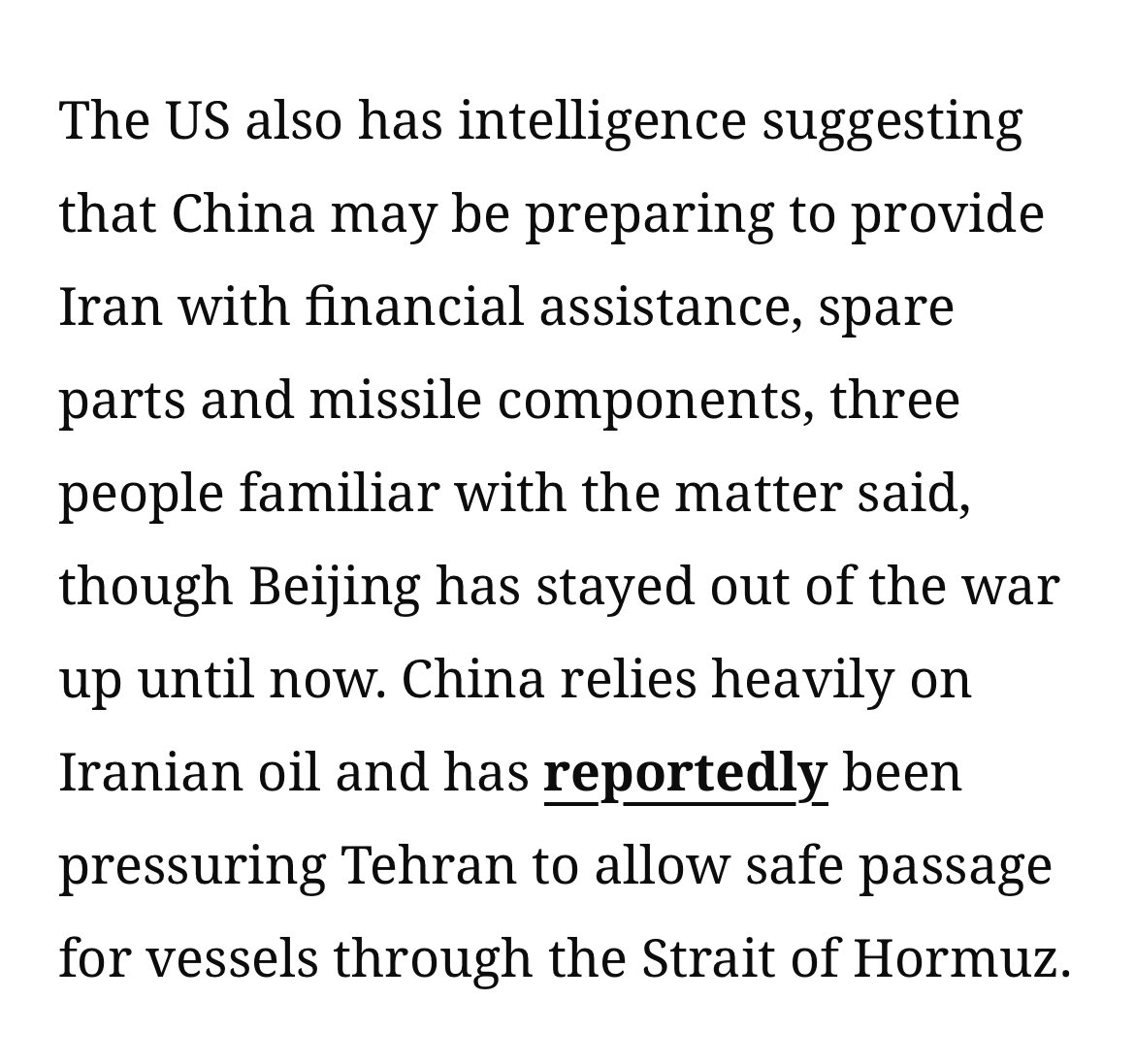 Previous: >>530056172Timeline▶Day: 7>US intelligence suggests that China may be preparing to provide Iran with financial support, spare parts, and missiles components - CNN>Crude oil futures stretch toward $90 a barrel>Trump says: "There will be no deal with Iran except unconditional surrender!">Russia is sharing intelligence with Iran to assist in targeting U.S. forces - WaPo>Qatar's energy minister warns oil prices could rise to $150 within two weeks>Azerbaijan is withdrawing diplomats from Iran, closing its embassy in Tehran, and raising the readiness of its military forces>Editor-in-Chief of The War Zone (TWZ) Tyler Rogoway says the U.S. and Israel have not achieved full air supremacy over Iran, despite claims>Major Gulf economies — including Saudi Arabia, the UAE, Qatar, and Kuwait — are reviewing overseas investments as the Iran war strains their finances>UAE is considering freezing billions of dollars in Iranian assets held in the country, and may also seize Iranian ships – WSJ>U.S. strategic bombers arrived in Diego Garcia, massive uptick in bomber sortie rates coming soon▶Livestreamshttps://www.youtube.com/watch?v=4E-iFtUM2kkhttps://www.youtube.com/watch?v=JHwwZRH2wz8▶Telegramhttps://rentry.org/tgnews▶Twitter accounts (using proxy frontend because twitter's UI is trash):https://nitter.net/clashreporthttps://nitter.net/FaytuksNetworkhttps://nitter.net/sentdefender▶Israel Rocket Alertshttps://www.tzevaadom.co.il/en/▶Air Traffichttps://www.flightradar24.com/https://flightaware.com/livehttps://globe.adsbexchange.com▶Maritime Traffichttps://www.marinetraffic.com/https://www.vesselfinder.com/Note: /pig/ is the only general for this event. Do not split it into dueling generals like /uhg/ and /chug/ or turn it into a support thread for either side.