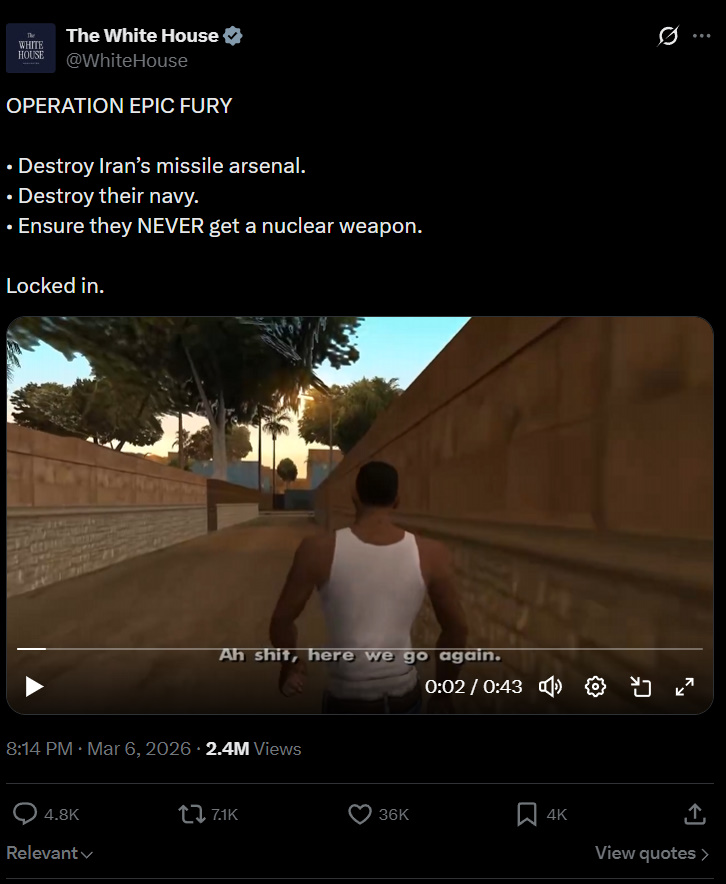 >>530062162No way, its real. https://x.com/WhiteHouse/status/2029953667600646655