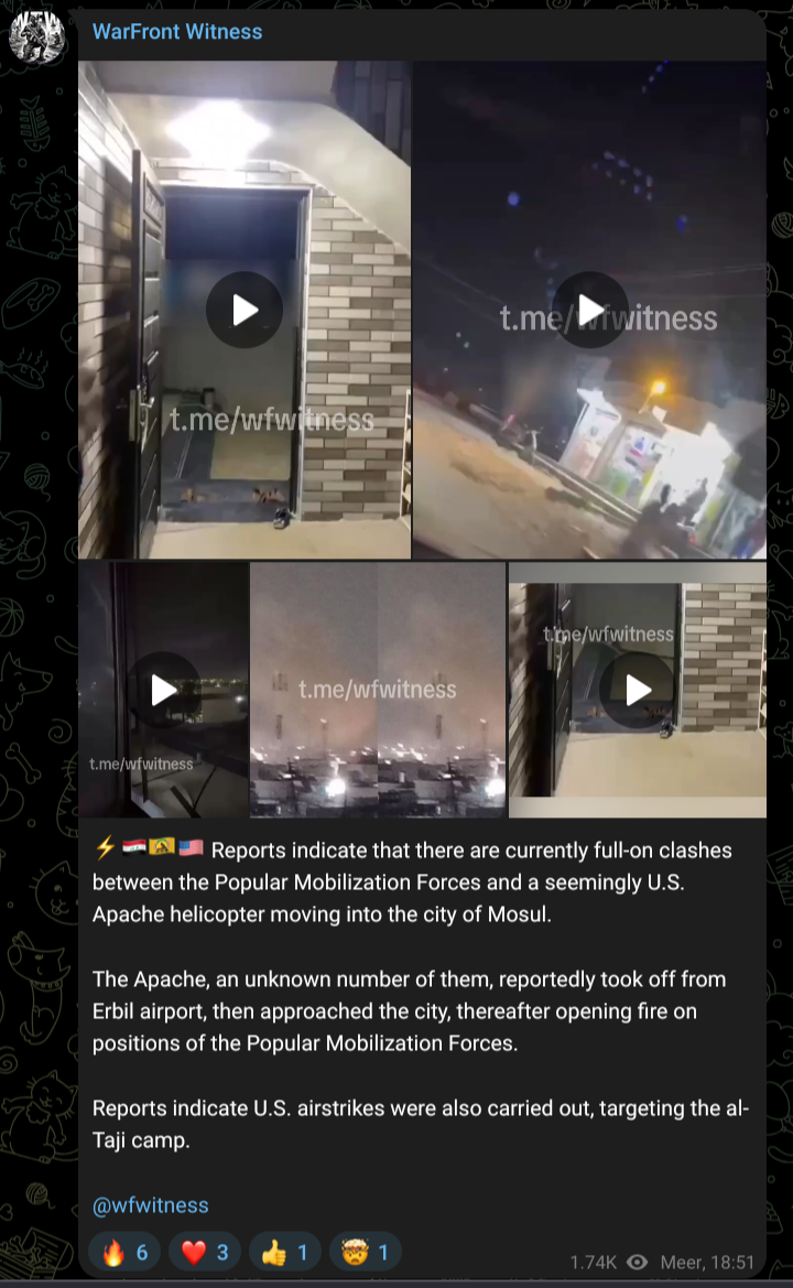 >full-on clashes between seemingly U.S. Apache helicopter moving into the city of Mosul, and Popular Mobilization Forces