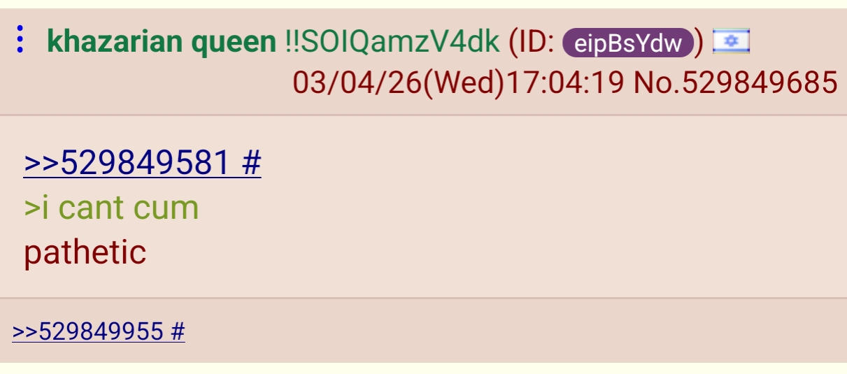 >DIE FOR ISRAEL GOY>JUST NOT FOR YOUR COUNTRY GOYFucking based Miggers.